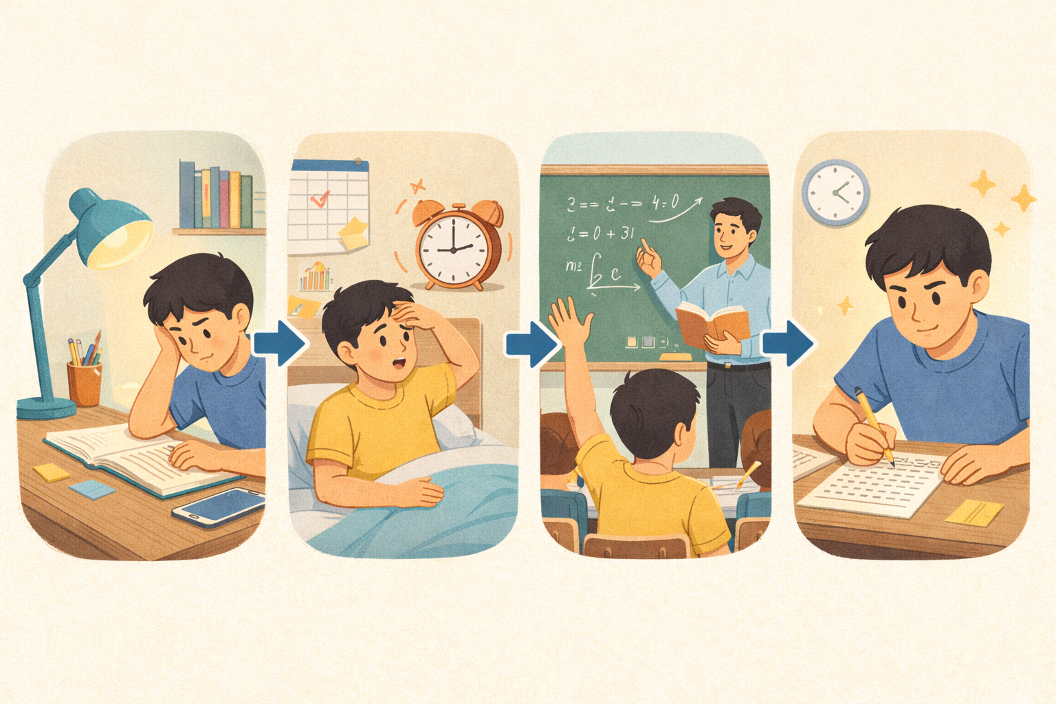 시험 직전에는 학습량을 늘리기보다 리듬을 유지하는 것이 중요합니다. 새로운 내용을 무리하게 추가하면 오히려 기존 이해가 흔들릴 수 있습니다. 이 시기에는 핵심 정리 노트와 오답노트를 중심으로 복습하며, 충분한 수면과 컨디션 관리를 병행해야 합니다.